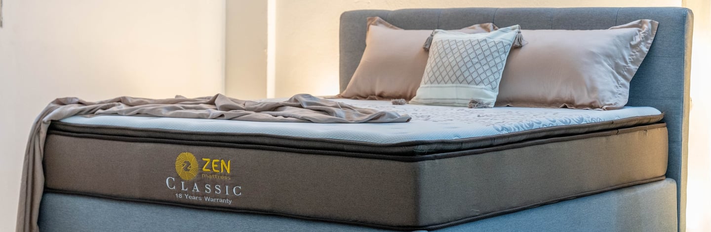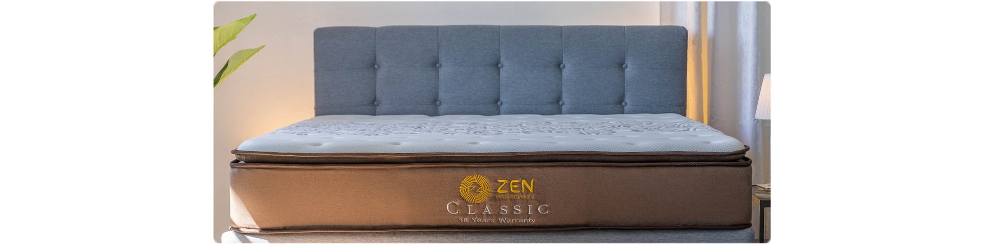 ZEN Classic mattress features the ZEN patented ultra comfort latex topper, a 5-zone individually pocketed spring system, and a double flexi-foam layer, working together to create a luxurious hotel-like experience and ensure a comfortable night's sleep. Wake up each morning feeling refreshed and ready to embrace the day with a restful and uninterrupted night's sleep, enjoying the ultimate in luxury and motion absorption.