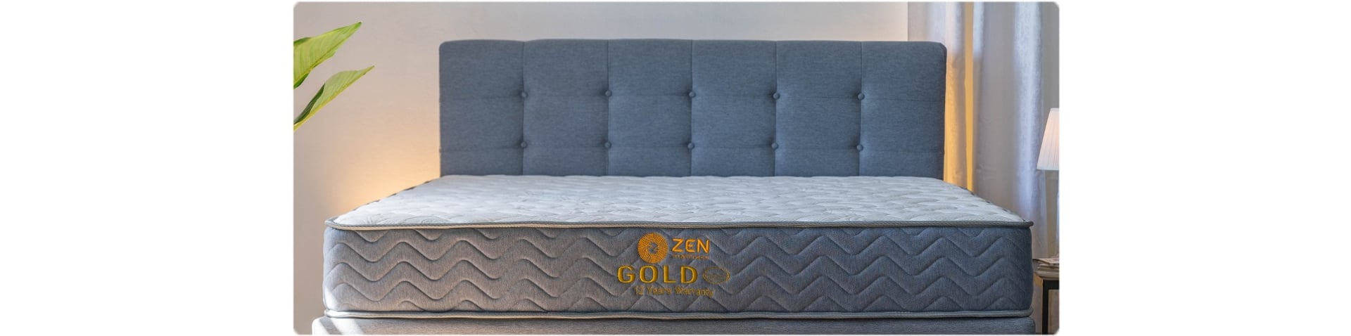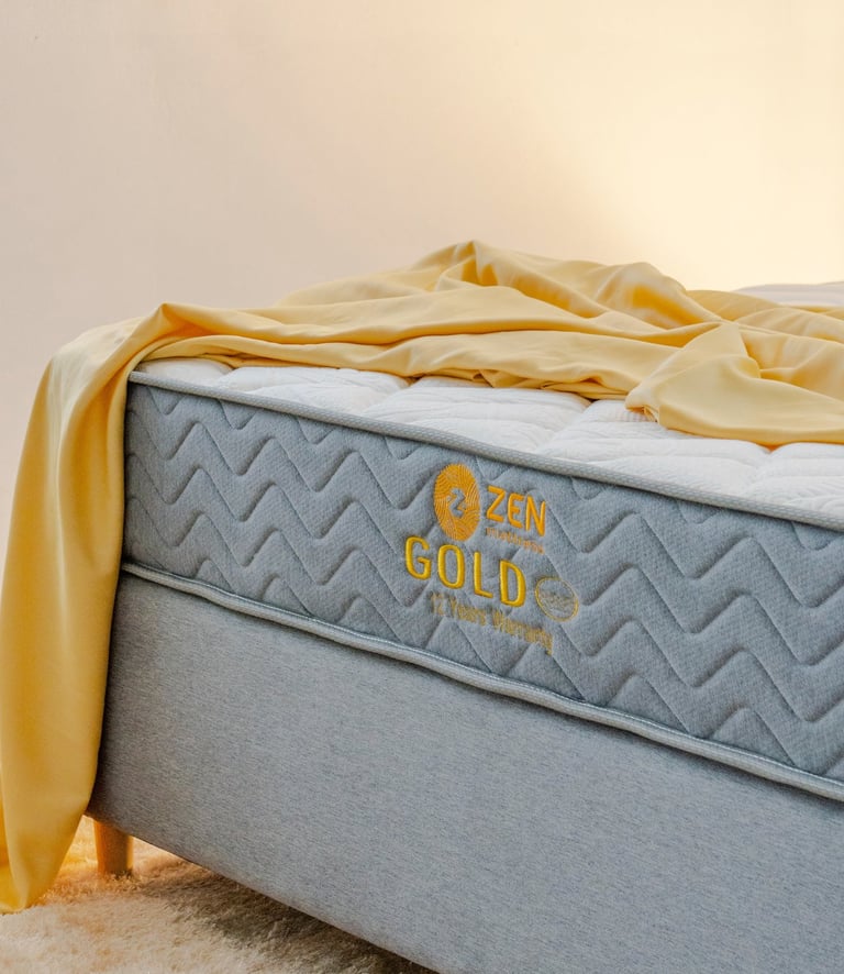The ZEN Gold mattress is a remarkable innovation, offering you the freedom to choose between two distinct mattress experiences within a single luxurious design. With a firmness rating of 9/10 for the patented ultra-firm convoluted foam and 6/10 for the ultra- soft latex foam, this mattress delivers unparalleled versatility and personalization.